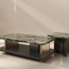 Khối chân bàn được tạo hình theo một vòng cong dứt khoát, mô phỏng chuyển động quỹ đạo. Lớp phủ sơn bóng nhiều lớp giúp ánh sáng lướt qua bề mặt, phản lại lên mặt đá, tạo ra một hiệu ứng “orbital glow”, ánh sáng xoay quanh tâm điểm.