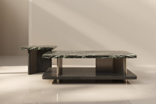 Hai phiên bản bàn cao và bàn thấp tạo nên sự nhịp nhàng tự nhiên, giống như những tầng rừng giao hòa. Khi kết hợp, chúng tạo nên một bố cục hài hòa, gợi cảm giác về sự chuyển động êm của tự nhiên trong khuôn khổ hiện đại.