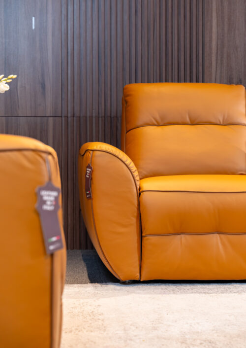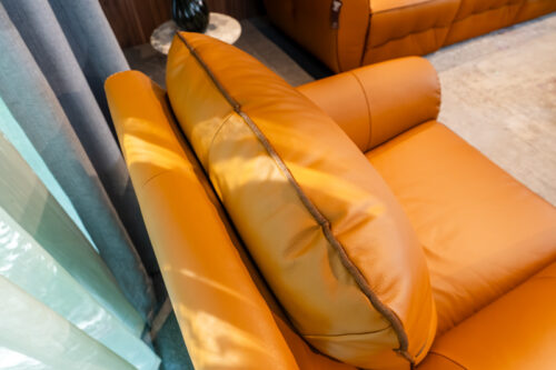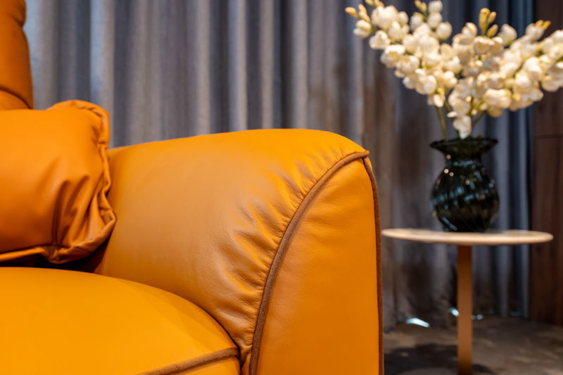 Lấy cảm hứng từ ánh hoàng hôn, Cosy mang sắc caramel ấm áp như nắng chiều rót vào không gian. Thiết kế cân bằng giữa sự mạnh mẽ và mềm mại, khối ghế vững chãi hòa cùng những đường cong tinh tế nơi tay vịn và tựa lưng, mang đến cảm giác nâng niu. Chất liệu da bò Ý mềm mại, bền bỉ theo thời gian, vừa gợi sự sang trọng vừa đem lại sự gần gũi thân thuộc. Mỗi đường khâu tỉ mỉ phản chiếu bàn tay tinh xảo của nghệ nhân Ý, khẳng định giá trị bền vững và gu sống chọn lọc. Thiết kế chuẩn công thái học với chiều sâu đệm ngồi lên đến 55cm cho trải nghiệm ngồi êm ái, ôm trọn cơ thể. Tựa tay mềm mại với chiều dài 22cm không chỉ là nơi giúp bạn tựa vào dễ dàng hơn khi ngồi, mà còn mang đến cảm giác êm ái khi nằm xuống, tựa đầu và nghỉ ngơi.